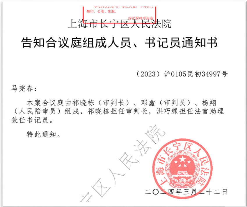 举报:上海长宁法院权大于法且邓鑫法官无授权办案 (2023)沪0105民初34997号